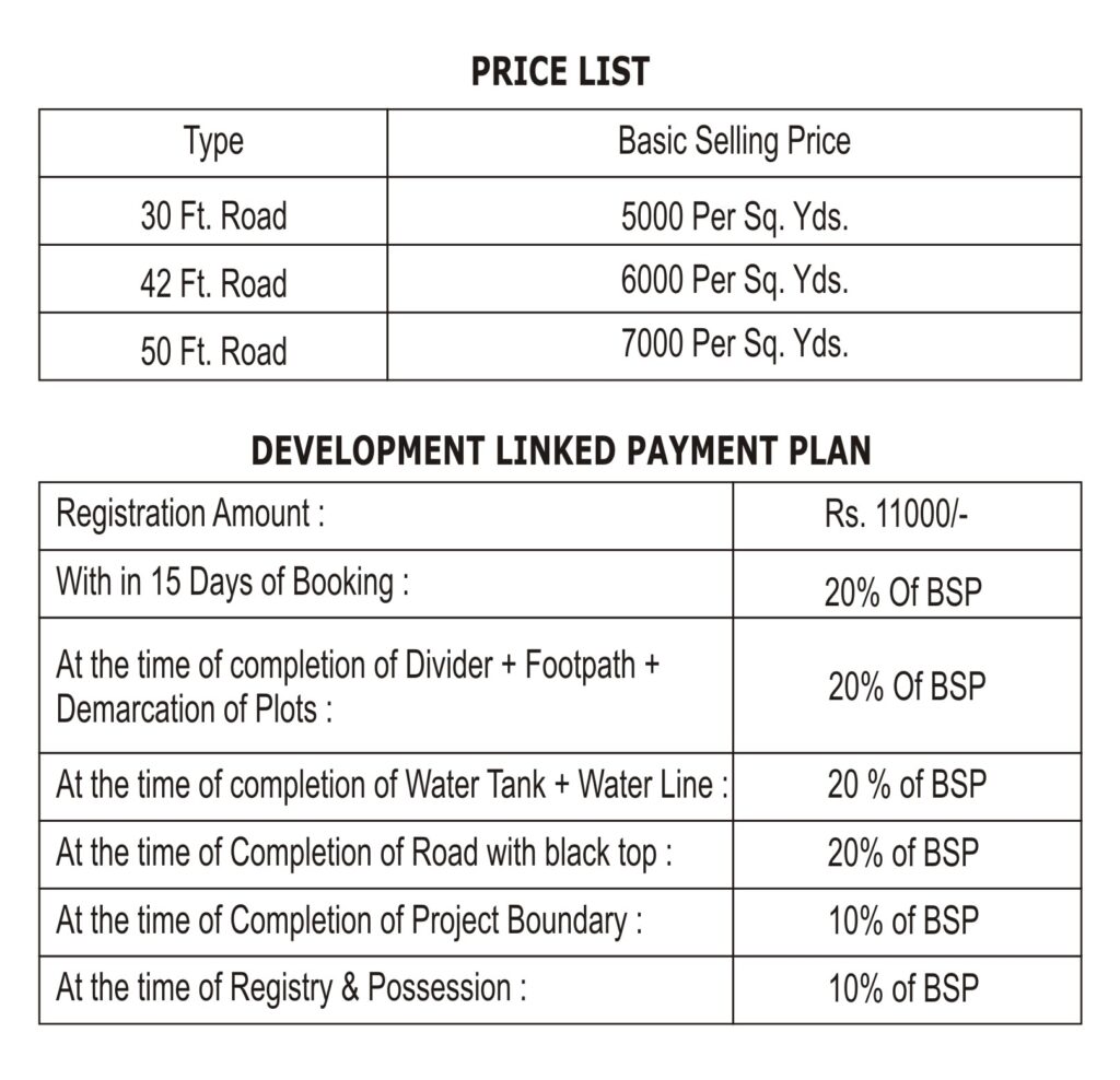 PLOT SIZES: 100 - 450 Sq. Yds.